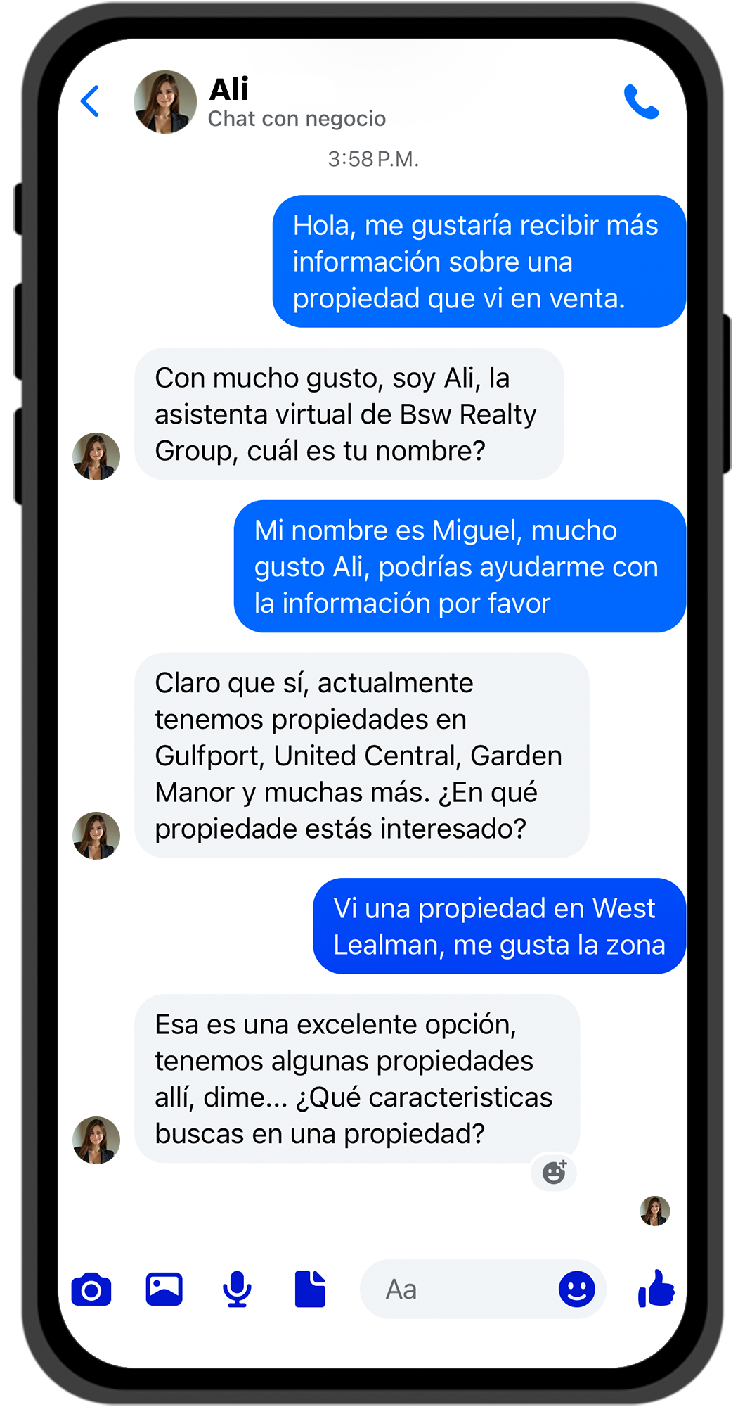 Tu negocio en Facebook nunca duerme. Deja que la IA haga el trabajo pesado de contestar, y tú solo dedícate a dar tu servicio o cerrar la venta.