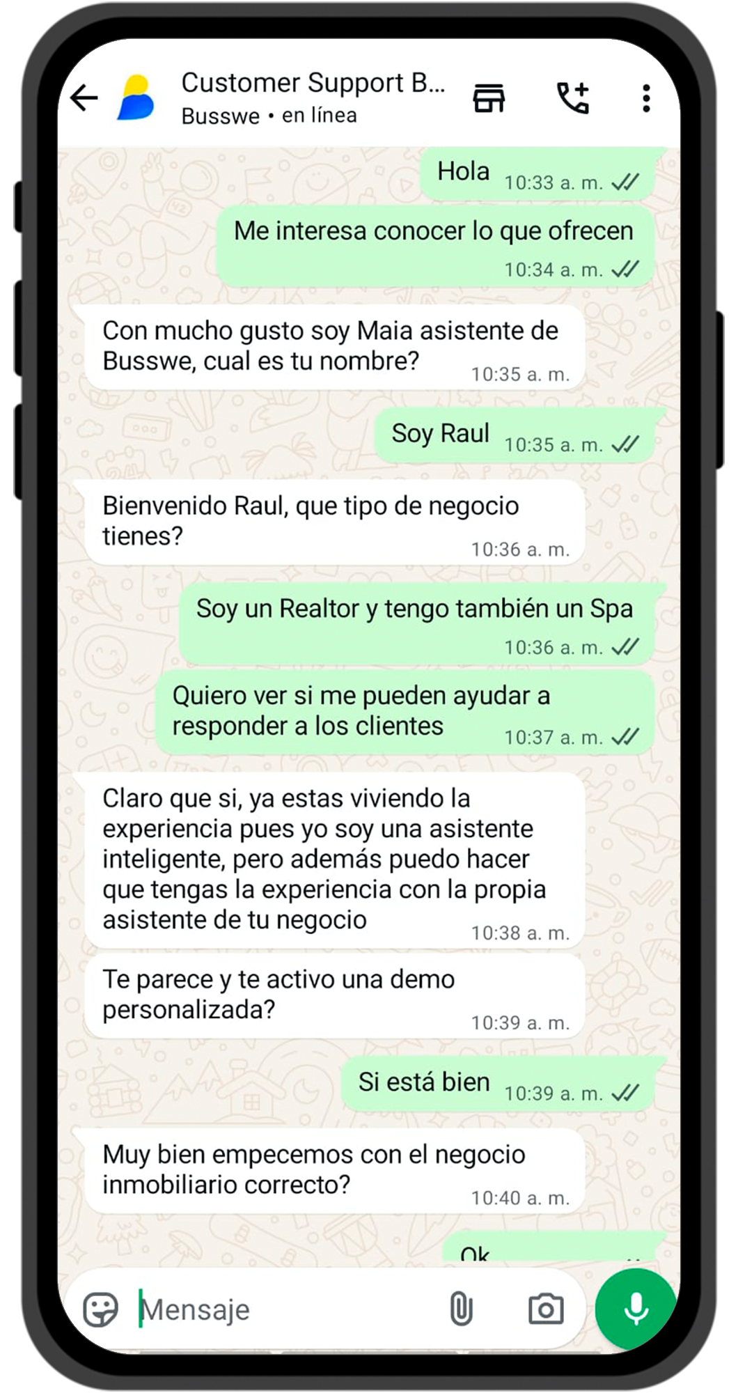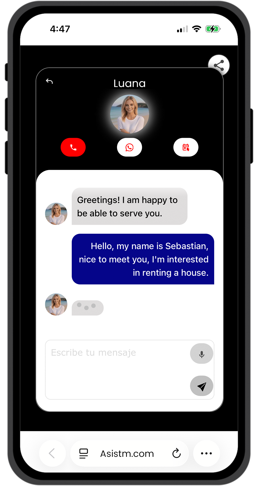 ¿Cansado de perder ventas en la noche o los fines de semana? Con AsisTM, cada mensaje de WhatsApp es contestado al instante, 24/7. El asistente toma los datos clave del cliente y lo prepara para que tú solo tengas que cerrar la venta al día siguiente.
